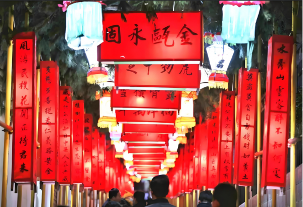 北宋時(shí),有個(gè)叫賈似道的人鎮(zhèn)守淮陰(今揚(yáng)州)時(shí),有一年上元燈節(jié)張燈,門客中有人摘唐詩(shī)詩(shī)句作門燈聯(lián)“天下三分明月夜,揚(yáng)州十里小紅樓?!睋?jù)說(shuō),此聯(lián)為我國(guó)最早的燈聯(lián)。此后歷代都有人爭(zhēng)相效仿,在大門或顯眼的柱子鑲掛壁燈聯(lián)、門燈聯(lián),不僅為元宵佳節(jié)增添了節(jié)日情趣,也為賞燈的人們?cè)黾恿诵蕾p的內(nèi)容。