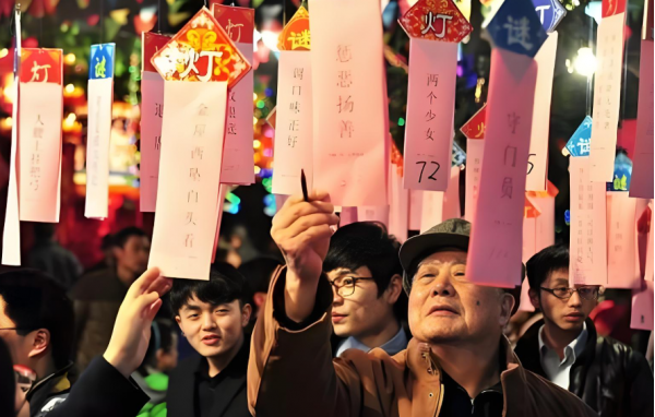 “猜燈謎”又叫“打燈謎",是元宵節(jié)后增的一項(xiàng)活動(dòng),燈謎最早是由謎語(yǔ)發(fā)展而來(lái)的,起源于春秋戰(zhàn)國(guó)時(shí)期。它是一種富有譏諫、規(guī)戒、詼諧、笑謔的文藝游戲。謎語(yǔ)懸之于燈,供人猜射,開(kāi)始于南宋?!段淞峙f事·燈品》記載:"以絹燈剪寫(xiě)詩(shī)詞,時(shí)寓譏笑,及畫(huà)人物,藏頭隱語(yǔ),及舊京諢語(yǔ),戲弄行人。"元宵佳節(jié),帝城不夜,春宵賞燈之會(huì),百姓雜陳,詩(shī)謎書(shū)于燈,映于燭,列于通衢,任人猜度,所以稱為"燈謎"。如今每逢元宵節(jié),各個(gè)地方都打出燈謎,希望今年能喜氣洋洋的,平平安安的。因?yàn)橹i語(yǔ)能啟迪智慧又饒有興趣,所以流傳過(guò)程中深受社會(huì)各階層的歡迎。