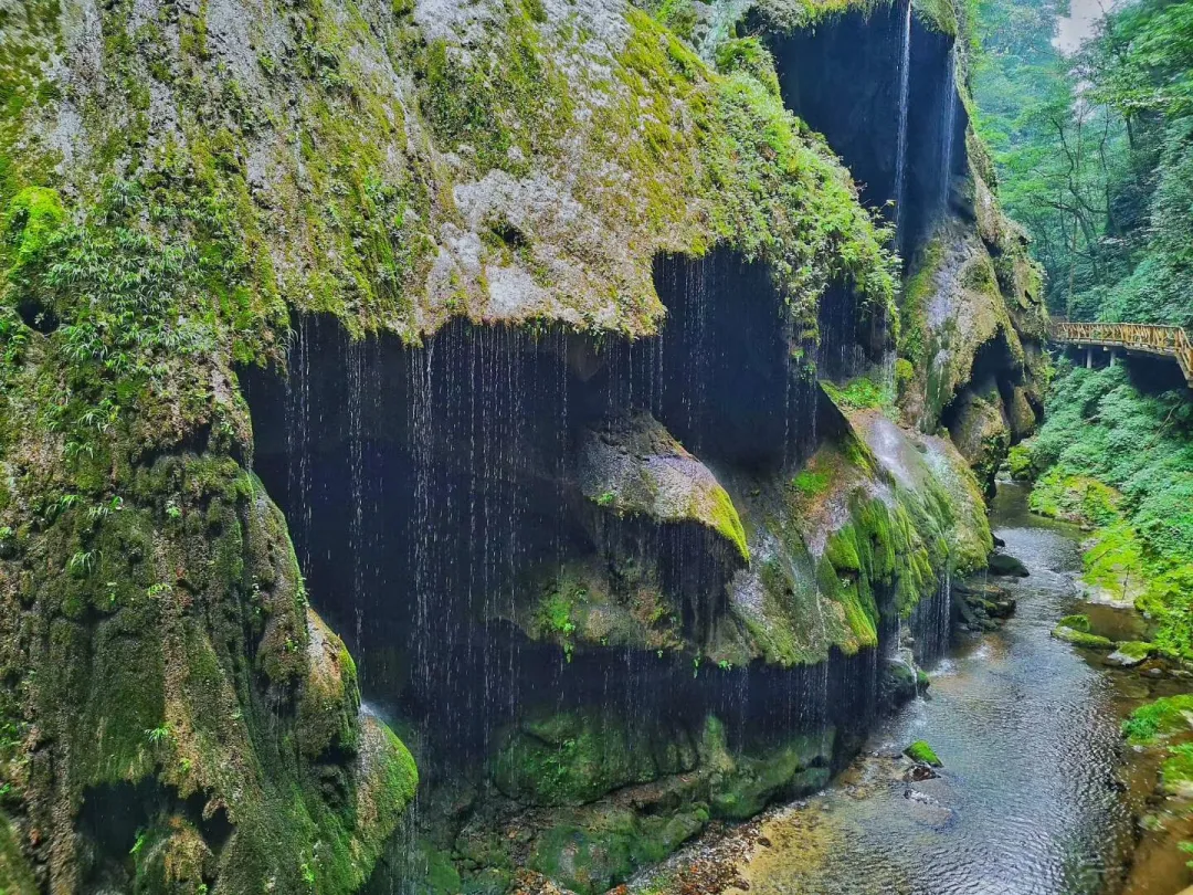 每每入春,巫山皆被晨霧圍繞,一江碧水蜿蜒而過,與長江遙相呼應(yīng)的便是這蜿蜒在陡崖峭壁上的輕紗了。