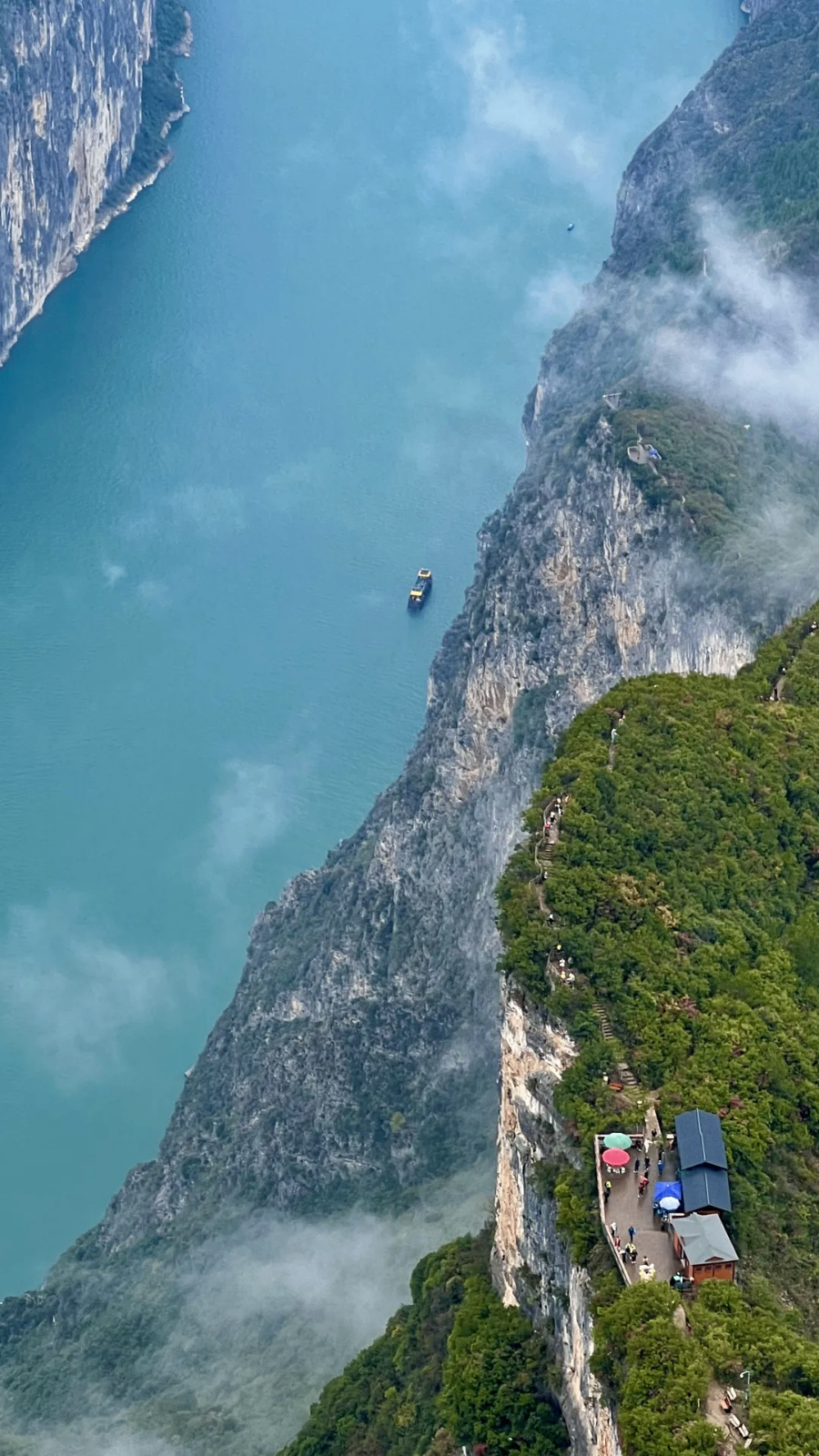 從翠屏峰腳下拾級而上,穿梭在風(fēng)景絕佳的棧道中,登頂之后,不會有"會當(dāng)臨絕頂,一覽眾山小"之感,卻能看盡輕輕柔柔的“煙雨”,讓你將三峽的景看夠本!