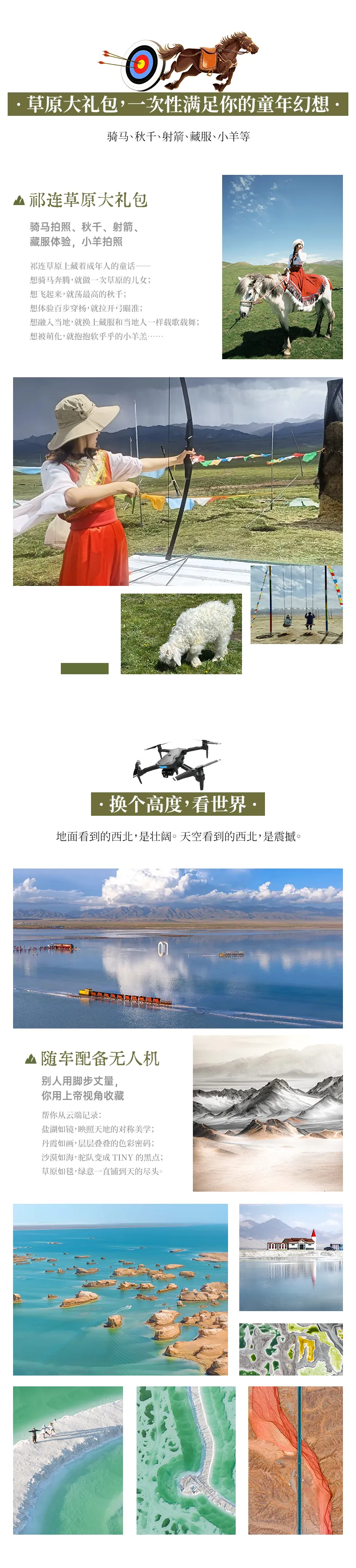 2、贈送祁連草原特色體驗(騎馬拍照、秋千、射箭、藏服體驗,小羊拍照);