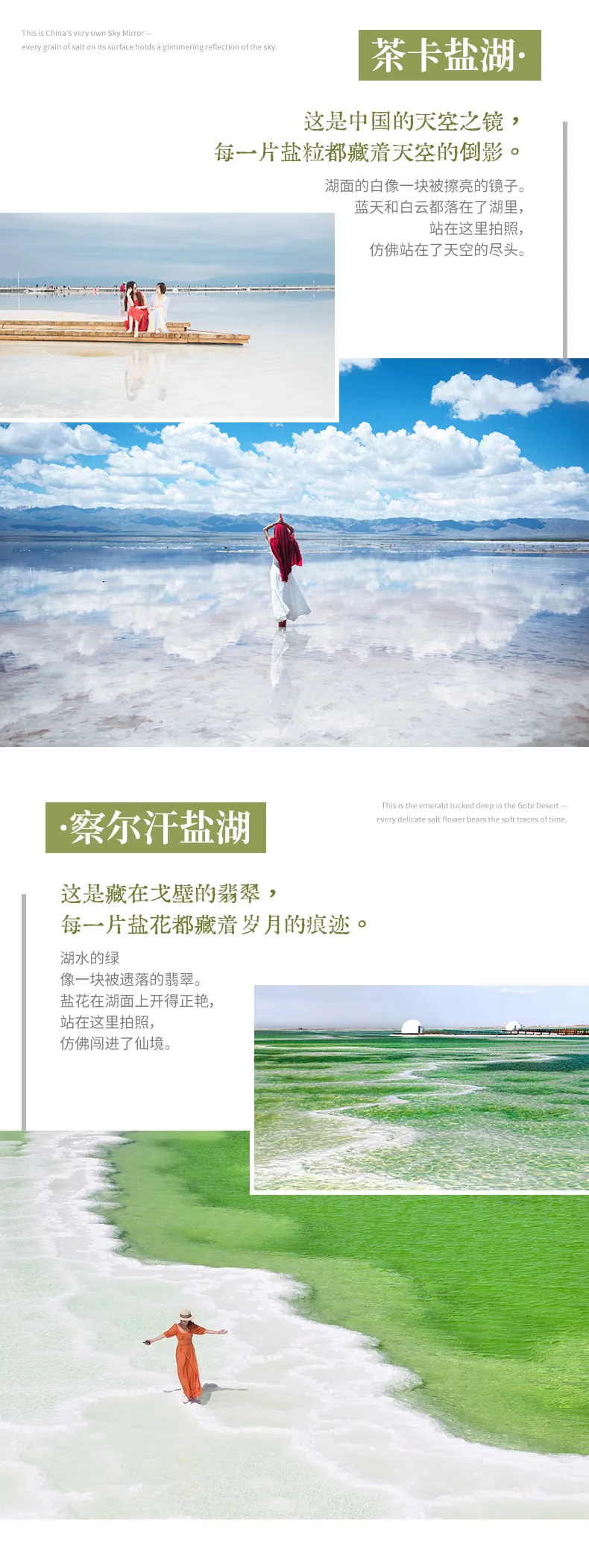 包含茶卡鹽湖門票、鳴沙山月牙泉門票、張掖七彩丹霞門票、察爾汗鹽湖門票、水上雅丹門票