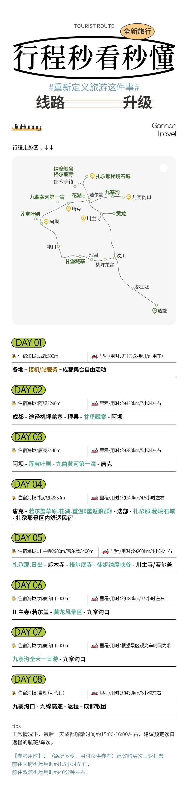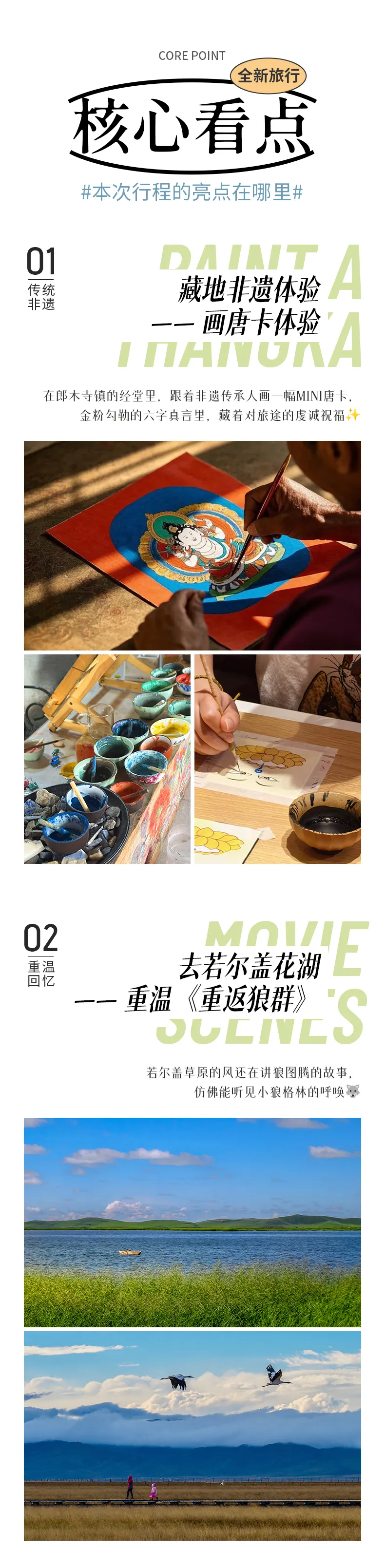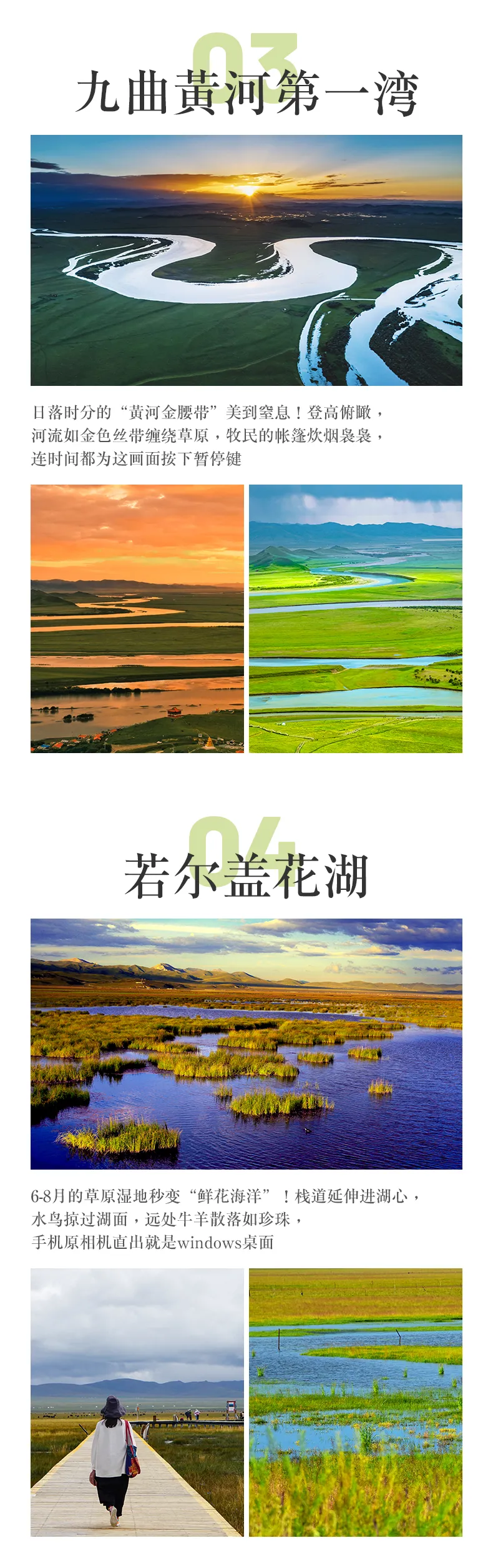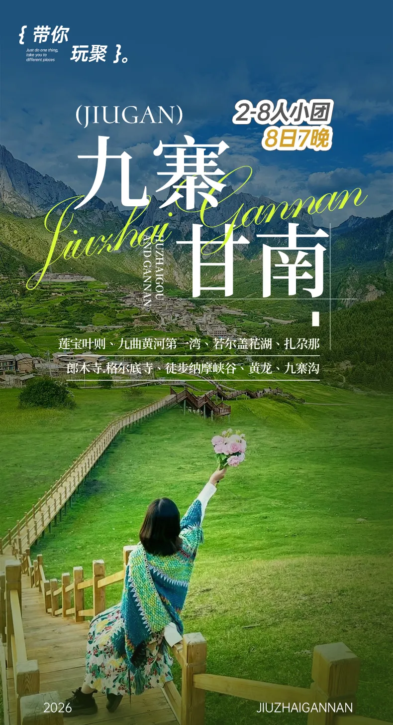 包含蓮寶葉則、九曲黃河第一灣、若爾蓋花湖、扎尕那、郎木寺.格爾底寺、徒步納摩峽谷、黃龍、九寨溝
