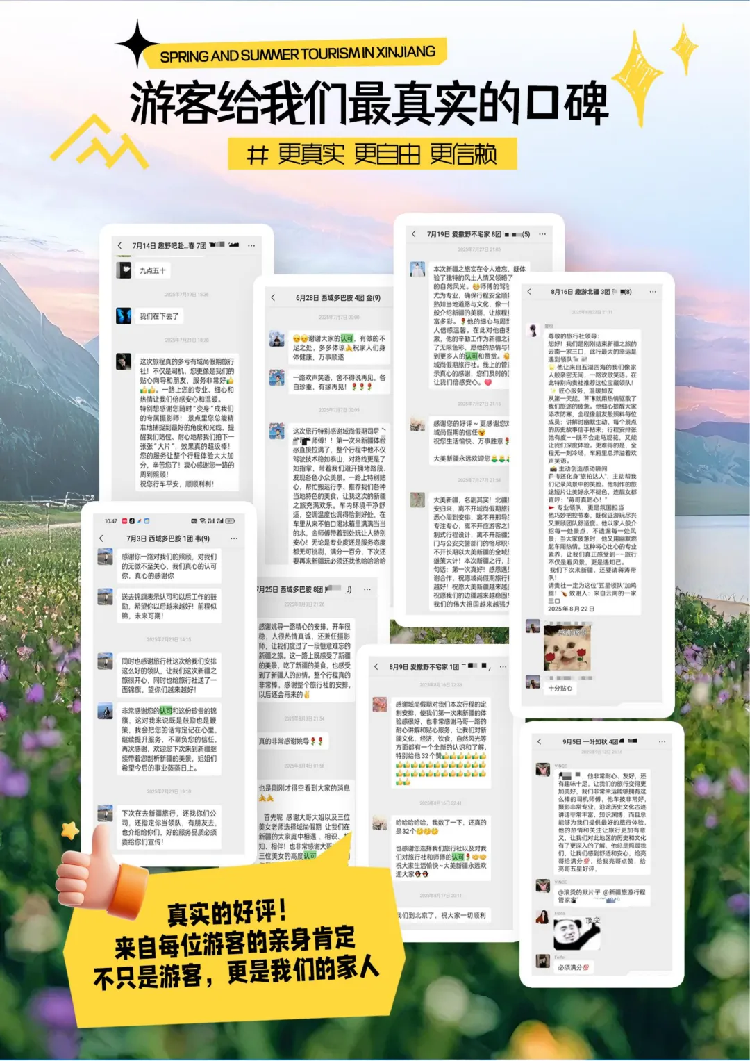 針對我們的精心安排的行程和司機的服務(wù),請留下寶貴的意見,簽好意見單,不受理因虛假填寫或不填意見書而產(chǎn)生的后續(xù)爭議和投訴,感謝各位貴賓對我們工作的支持和理解,我們會不斷的完善自我,提供更優(yōu)質(zhì)的服務(wù),如果您對這次新疆之行感到滿意,請介紹給您的親朋好友,我們熱烈歡迎您再次來到大美新疆,希望您一路平安,最真摯的祝福送給您!