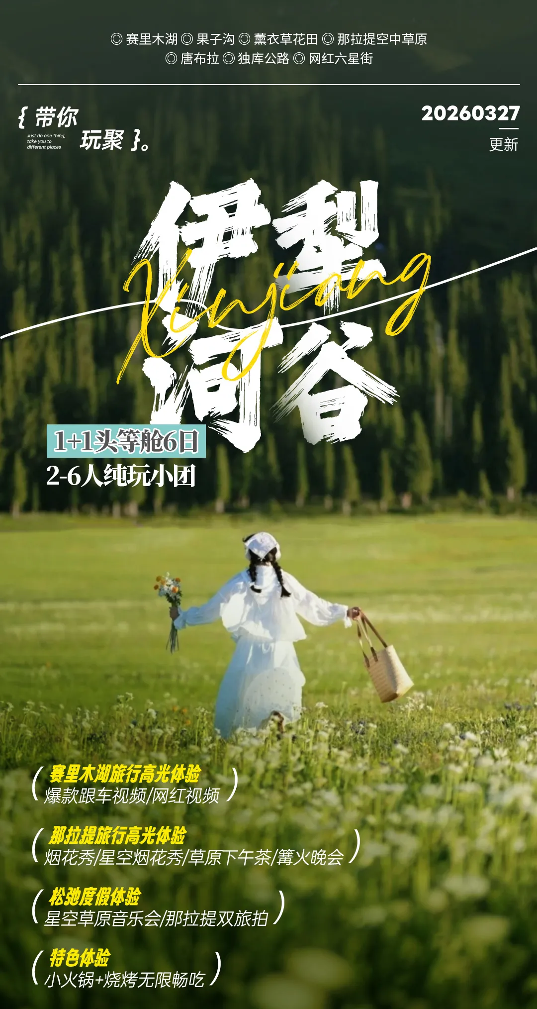 3、【那拉提網(wǎng)紅機位】邂逅私家專屬網(wǎng)紅機位旅拍,精修9張+1套服飾+小道具+小裝飾(4月20日落地安排)