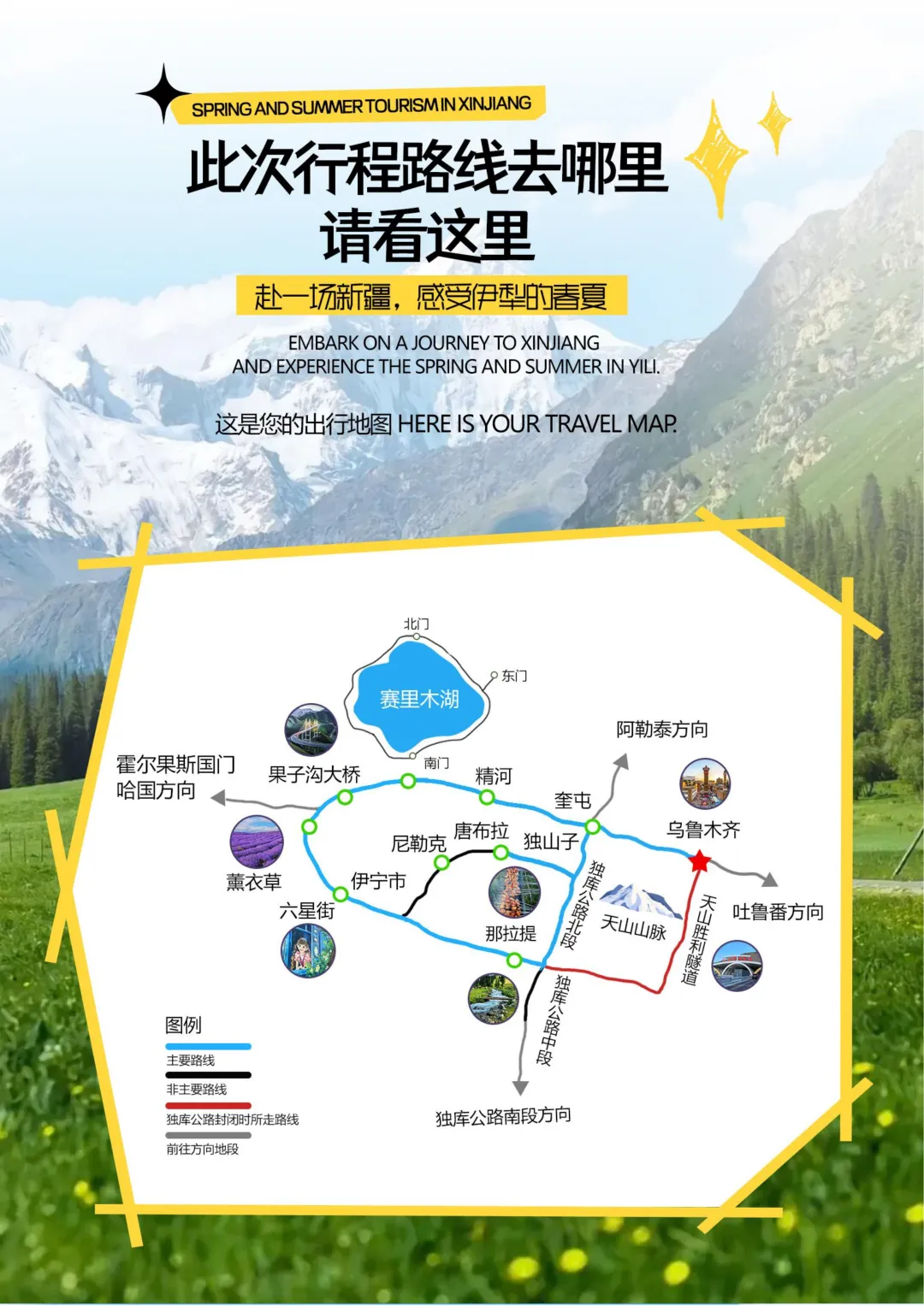 【如遇獨庫公路封路,取消唐布拉百里畫廊途觀。行程調(diào)整方案如下:那拉提-G218-巴倫臺-世界最長隧道(天山勝利隧道)-烏魯木齊】