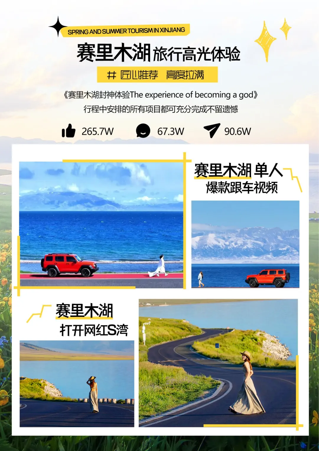 1、【網(wǎng)紅視頻】賽里木湖網(wǎng)紅爆款跟車視頻(配車坦克300個人拍)+鏡面倒影氛圍感大片+賽里木湖網(wǎng)紅S彎打卡