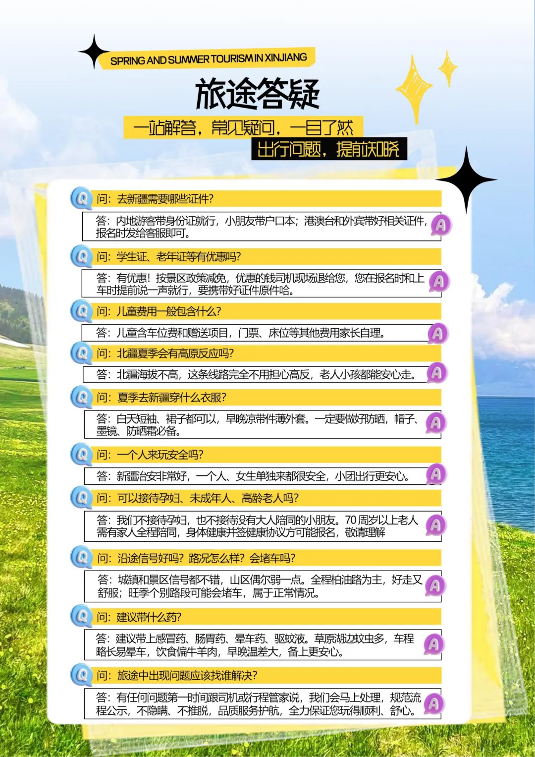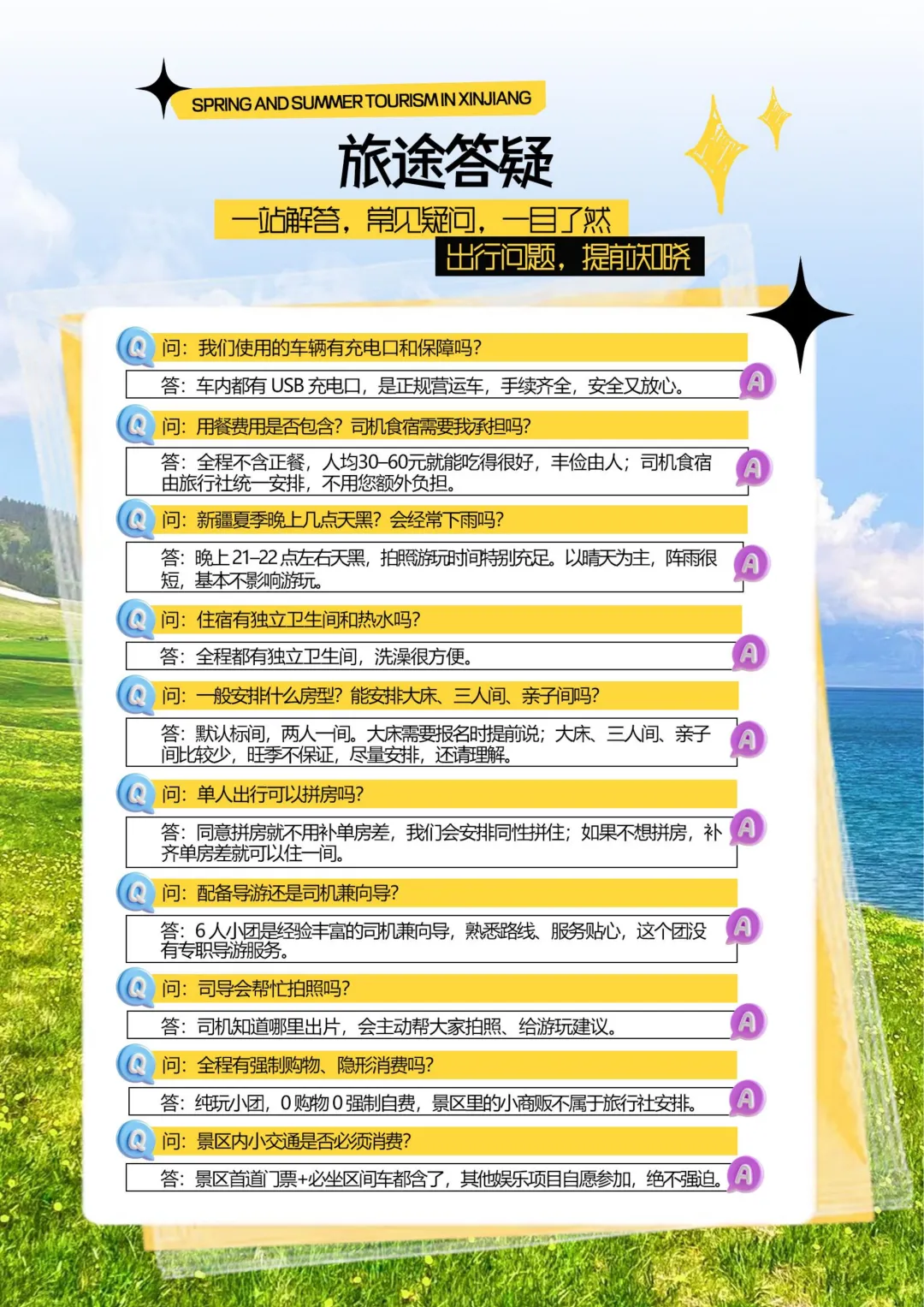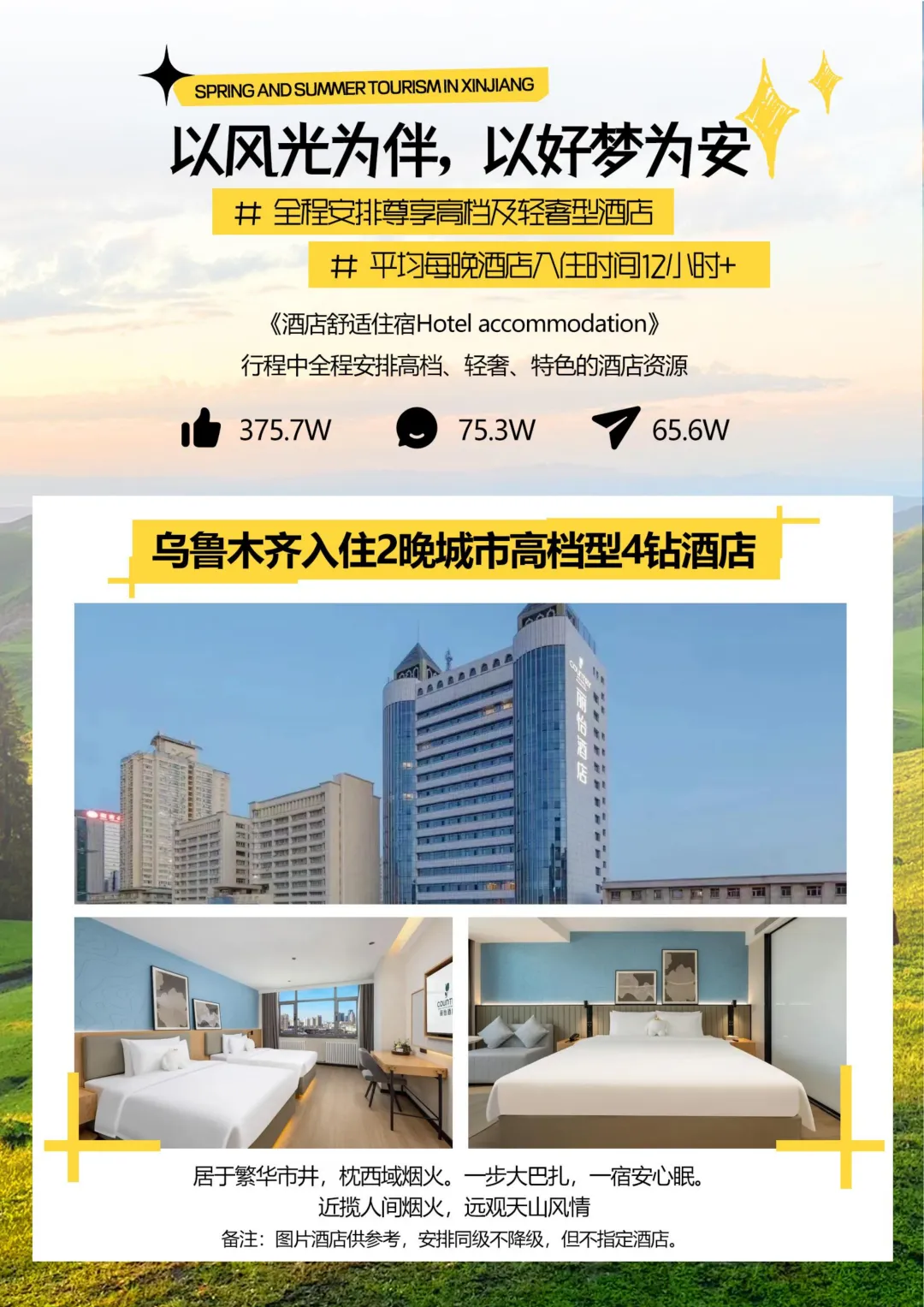 特別提示2:新疆酒店標準低于內(nèi)地,山區(qū)酒店無空調(diào);旺季若酒店被征用或爆滿,將安排同檔次及以上酒店。