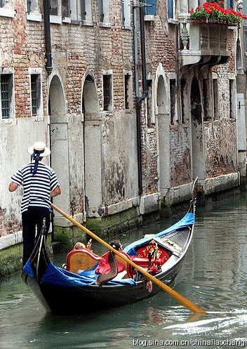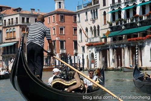 意大利的威尼斯建于島嶼之間,河流即街道。人們出門則乘坐岡朵拉。剛朵拉的造型獨(dú)特,裝飾華美,兩頭翹,底部平,狹長,專供游客抒情作秀。
