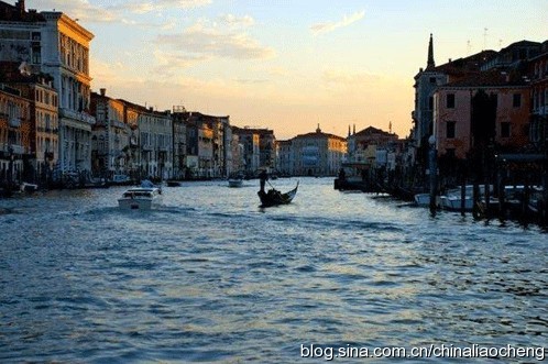 黃昏時(shí)分,夕陽在水道邊的房子撒下一角,這時(shí),坐著岡朵拉,聽著船夫的歌聲,泛舟河上。遠(yuǎn)眺光影浮運(yùn)的建筑,體會威尼斯的旅情。