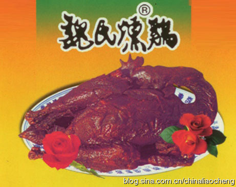 清嘉慶十五年(1810年),聊城魏家扒雞店傳人魏永泰先生創(chuàng)制熏雞,馳名于道光二十年(1840)前后。迄今已有190余年的歷史。當時聊城緊靠運河,交 通 便 利,商 賈 云 集。為 便 于 扒 雞 運 銷 外 地,魏 家 扒 雞 店 研 制 成 這 種能夠長 時期 保存的 熏雞,每 年 農(nóng) 歷 十 月 至 十 二 月 成 批制作,供全年銷售。魏氏熏雞選料精良,制作精細。選取三斤重的公雞,殺好清凈,內(nèi)置十六味中藥以及相關的香料,中藥有白芷、草果、枸杞、陳皮、黨參等,香料如八角、桂皮、胡椒、蔥姜等,置煮制的鐵鍋或陶罐中煮爛,中藥及香料皆滲入肉質,再懸起置于火烤煙熏之中。熏制是一個極慢的過程,先是炭烤,后為煙熏,用比較純的木質鋸末置熱鐵板上引煙。三斤重的大公雞熏至一斤左右,褐色如鐵,恰是一毛不存的鐵公雞了。1935年夏,老舍先生為之名曰“鐵公雞”。經(jīng)熏制的扒雞,水分少、皮縮裂、肉外露、無彈性、藥香濃,可存一年左右不變質。這種熏雞,形美肉嫩骨酥,色鮮味美,肉質梗韌,香而不膩,入口余香深長獨特。食用方便。撕開即可食,入口余香深長獨特,既可下酒,又可佐茶。魏氏熏雞是一道嚼菜,十分的具有韌性。咀嚼魏氏熏雞,漸漸的香味在兩舌邊滲出,舌后端便也就感知淡淡的煙火氣息,堪稱上等美肴和饋贈佳品。魏氏熏雞制作技術,代代相傳。魏氏子孫仍嚴格按照傳統(tǒng)工藝,并吸收先進技術,采用新的設備制作熏雞,產(chǎn)量、質量均不斷提高,產(chǎn)品遠銷閩、粵、浙滬、京、津等地。