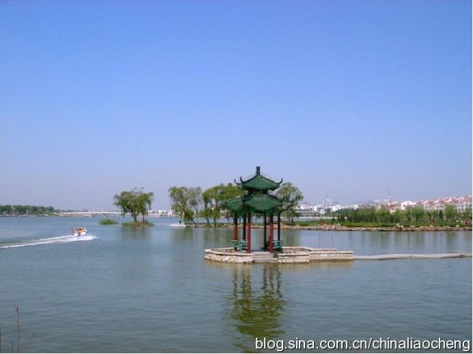 聊城是一座碧波蕩漾的水之城,是一個(gè)與水結(jié)緣的地方,說起聊城,總也離不開一個(gè)水字。聊城水資源非常豐富,流域面積30平方公里以上的河流有23條,流域面積在100平方公里的河流有3條,中華民族的母親河——黃河由西向東蜿蜒百里。素有“南有西子,北有東昌”之稱的東昌湖,千頃湖水,清如許,明如鏡,煙波浩淼的碧水環(huán)繞著保存完好的古城。聊城古城面積1平方公里,方方正正,大街小巷并列對(duì)稱,垂直交叉,就像一個(gè)巨大的棋盤飄浮在萬頃碧波上。古城中央聳立著號(hào)稱中國四大名樓之一的光岳樓,氣勢(shì)恢弘,巍峨壯觀。馳名于世的京杭大運(yùn)河像一條玉帶繞城、湖而過。華夏名樓、歷史名城、江北名湖、世界名河共同織就了“城中有水,水中有城,城水一體,交相輝映”的獨(dú)特城市風(fēng)貌。說起水城,我想大家一定會(huì)聯(lián)想到世界水城威尼斯,其實(shí),早在威尼斯還是荒原一片的時(shí)候,聊城的運(yùn)河里已經(jīng)是帆檣林立了。蜿蜒的水巷,流動(dòng)的清波和豐富的水景觀讓聊城成為遠(yuǎn)近聞名的江北水城。