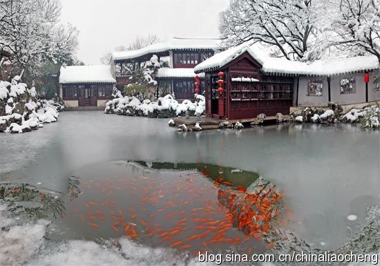 園里水面廣闊、回廊相連,淼淼池水以閑適、曠遠(yuǎn)、雅逸和平靜氛圍見長,曲岸灣頭,來去無盡的流水,蜿蜒曲折、深容藏幽而引人入勝;通過平橋小徑為其脈絡(luò),長廊逶迤填虛空,島嶼山石映其左右,使貌若松散的園林建筑各具神韻。園內(nèi)的山石、古木、綠竹、花卉,構(gòu)成了一幅幽遠(yuǎn)寧靜的畫面。