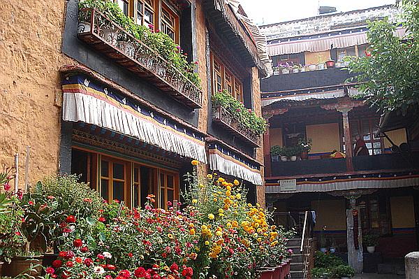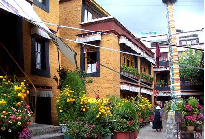 阿尼倉姑寺的院子里有一個倉姑甜茶館,版權(quán)所有山東聊城聊之旅國際旅行社有限公司,轉(zhuǎn)載必究!是院子里一個露天大棚,用柵欄與寺院隔開。每天 ,在八廓街轉(zhuǎn)經(jīng)、燒香,累了的人們,來到倉姑寺轉(zhuǎn)經(jīng)后,從側(cè)門進(jìn)入院子里的甜茶館休息聊天,那愜意真令人羨慕。