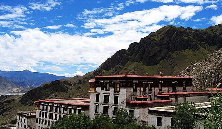 樓高3層,平頂宮堡式建筑,恢宏壯麗。殿內(nèi)供有藏傳佛教格魯派創(chuàng)始人宗喀巴大師等人佛像,陳設(shè)豪華,供器甚多。明崇禎十五年(1642年),和碩特蒙古首領(lǐng)固始汗支持達(dá)賴五世打敗藏巴汗后,建立了格魯派統(tǒng)治政權(quán),其政權(quán)機(jī)構(gòu)即設(shè)于此。直到清順治五年(1648年)布達(dá)拉宮白宮建成,達(dá)賴五世由該處移居布達(dá)拉宮,政權(quán)機(jī)構(gòu)也隨著轉(zhuǎn)移。后來(lái),把格魯派統(tǒng)治的西藏地方政權(quán)統(tǒng)稱為甘丹頗章政權(quán)。