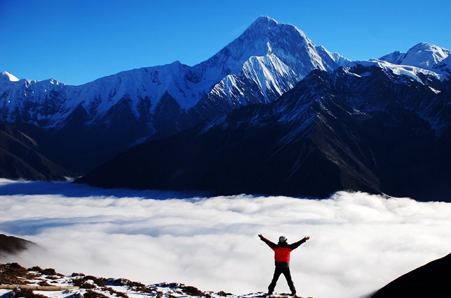貢嘎山峰的高峻,遠非內(nèi)地一般名山可比。登臨其上后,放眼望去,萬里銀白的雪域匍匐在山下,遼闊的視野和由山體的高度而產(chǎn)生的登山成就感絕對值得一攀。由于其海拔非一般山峰可比,因此要求登山者作足充分準備,以免因勞累和寒冷導致半途而廢。登山者多從西北山脊路線登頂,這也是前人總結(jié)下來的經(jīng)驗。
