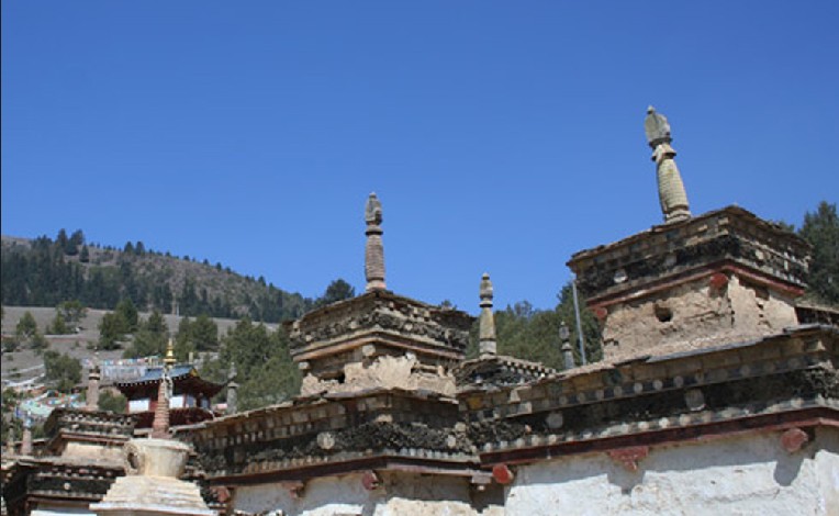 卡瑪多塔林位于類烏齊縣國道317線右側(cè),距縣城25公里。塔林依山位傍水、風景秀麗、古木參天、蒼松翠柏、四季常青。在蔥郁翠柏中有一座別致的小經(jīng)堂,主供蓮花生大師像,左右各豎有幾根高大的轉(zhuǎn)經(jīng)筒。傳說,過去這兒有108個塔,現(xiàn)已恢復和修建的塔有幾十座。其造型各異,別具一格,既有要求嚴格的八佛塔,也有方形怪塔;既有幾米高的大塔,也有不到三米的小塔。