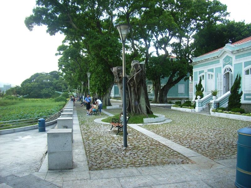 海灣昔日曾為水上飛機(jī)起落點(diǎn),一九六八年后形成了海灘一大片紅樹(shù)林。岸邊砰石馬路旁,五座一列的葡式建筑,興建于一九二一年,如今掩映在綠樹(shù)中,成為游人喜到之處,更成為拍攝婚紗相的好地方。