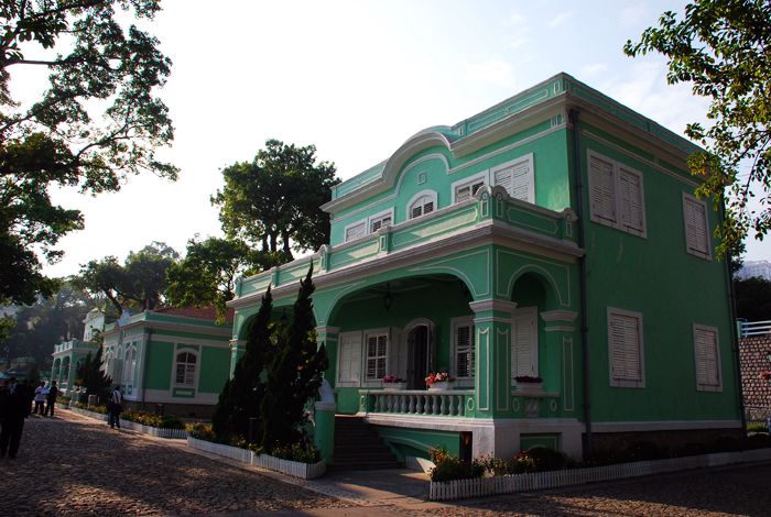 面臨大海的海灣,昔日曾是水上飛機(jī)的起落點(diǎn)。兩端圍繞著小山崗,風(fēng)平浪靜、綠樹(shù)成蔭、環(huán)境十分幽雅。當(dāng)初是葡國(guó)高級(jí)官員的官邸,后來(lái)澳門(mén)政府旅游司把它改建為博物館,1992年評(píng)為有建筑價(jià)值的房屋群,前三幢為博物館、后二幢為展覽館和迎賓館。特區(qū)政府成立,正式作為住宅博物館對(duì)外開(kāi)放。
