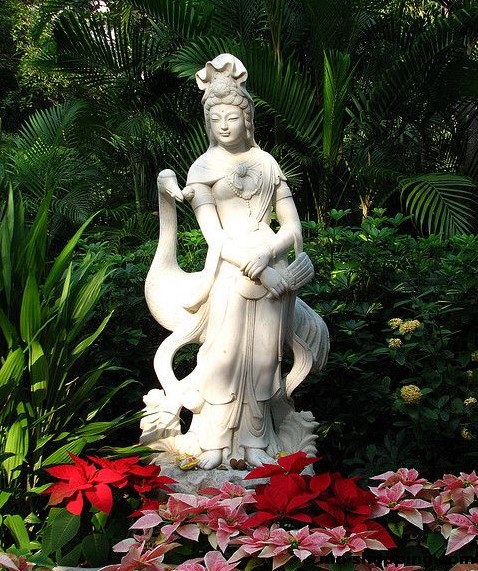 從正門(mén)進(jìn)入公園,是一座書(shū)有“屏山鏡樓”四個(gè)大字的古色古香的圓形拱門(mén),兩旁是長(zhǎng)滿鮮花和翠竹的林蔭小道,參天的榕樹(shù)、成片的竹林、盛開(kāi)的鮮花掩映著樓臺(tái)亭閣、曲徑回廊、池塘橋榭、流水飛瀑 、假山怪石。園內(nèi)景點(diǎn)分布得當(dāng),景色錯(cuò)落有致。假山堆成的奇峰怪石玲瓏剔透、崢嶸百態(tài),涓涓流水從假山頂部跌落 ,形成五疊瀑布,水流又注入假山腳下的小池塘,一位用巨石壘成的古代美女玉立池中,池邊垂柳依依,池內(nèi)水明如鏡,白蓮搖曳,成群的非洲鯽魚(yú)游來(lái)游去,圓圓的荷葉和橫跨其上呈弧狀彎曲的九曲橋相映成趣。