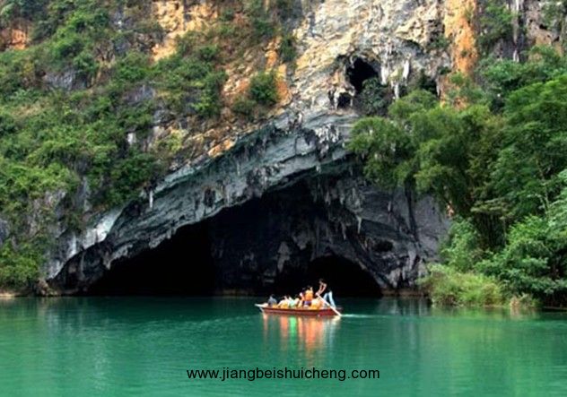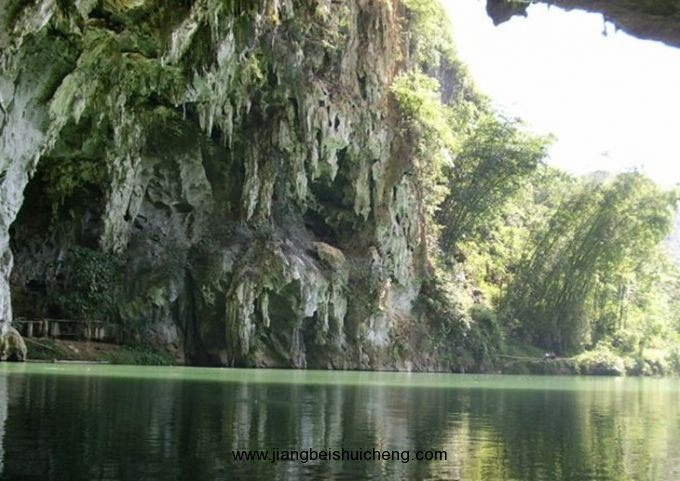 百鳥(niǎo)巖,位于廣西巴馬瑤族自治縣甲篆鄉(xiāng)烈屯西北面的漠齋山下,別名龍虎洞。因洞內(nèi)燕子棲集,蝙蝠掠飛,又名百鳥(niǎo)洞。盤(pán)陽(yáng)河自吉屯白熊洞潛入山下,形成1000多米的伏流暗河后,在此洞流出。洞口寬50米,一石壁把洞口分成兩個(gè)略呈三角形的左右洞口。左側(cè)洞口寬40米,高16米,兩洞口內(nèi)側(cè)相通。洞深500米,蜿蜒曲折,直通與白熊洞一山之隔的拉類?ài)晗碌囊粋€(gè)側(cè)洞口。洞中水平如鏡,深不可測(cè),寬處約40米,窄處10米,從洞口行舟至300米轉(zhuǎn)折處,距水面30米處有一圓形天窗,山坳之光照到水面,猶如舞臺(tái)上的光束,色彩紛呈,近右側(cè)洞口處有沙灘,版權(quán)所有山東聊城聊之旅國(guó)際旅行社有限公司,轉(zhuǎn)載必究!可??恐鄞I碁┯覀?cè)是一塊30多平方米的石臺(tái),臺(tái)面深溝淺窩,坑坑坎坎,石臺(tái)一側(cè),洞壁雪白,可攀援其中。有石鷹、石柱、石幔、石觀音菩薩等,百態(tài)千姿,令人目不暇接。石臺(tái)的周圍有仙女梳妝、海螺石,石螺對(duì)面有石桌、石缸和石松果等。側(cè)面洞口外香椿林下野花艷目植被繁衍,把洞口點(diǎn)綴得幽靜雅致。洞中歧洞叉水道不可勝數(shù),密如蜂房,不知所向,整個(gè)洞仿佛一座裝飾華麗、景幻莫測(cè)的水下龍宮。其奇特的景象似桂林蘆笛巖,又因非乘舟不能游覽,游人贈(zèng)予“水上蘆笛巖”的美譽(yù)。