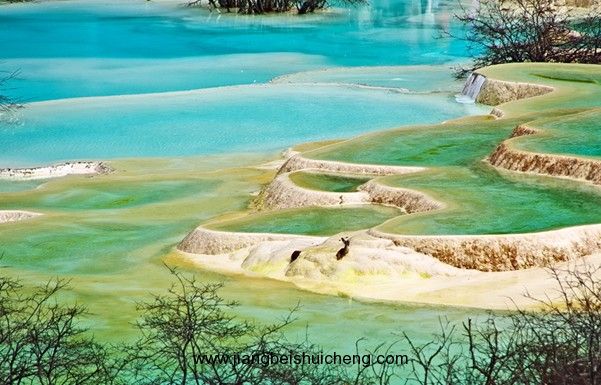 從洗身洞到婆蘿彩池,有一道長(zhǎng)約1500米,寬70-120米的鈣化流,在目前世界上發(fā)現(xiàn)的同類形態(tài)中最壯觀、最長(zhǎng)、色彩最豐富,稱為“金沙鋪地”。左側(cè)是盆景池,由一組近百個(gè)水池組成,池中有池,池外套池。版權(quán)所有,山東聊城聊之旅國(guó)際旅行社有限公司,轉(zhuǎn)載必究!池堤隨樹(shù)的根莖與地勢(shì)而變,堤聯(lián)岸接,活水同源,順勢(shì)層疊;池底呈黃、白、褐、灰多種顏色,池面澄凈無(wú)塵,望若明鏡;池旁池中,到處是木石花草,翠柏盤根,山花含笑,野果繽紛。這一片絢麗的景觀,儼然天設(shè)地造的奇特盆景,使園藝師們也嘆為觀止。這一片景觀,還有緊傍森林的明鏡倒影池、掩映于杜鵑花叢間的婆蘿彩池和擁有彩池500多個(gè),鈣化景觀中色彩最為豐富的爭(zhēng)艷池。
