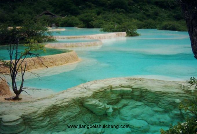 進(jìn)入黃龍景區(qū),首先看到的是一組精巧別致、水質(zhì)明麗的池群--迎賓池。池子大小不一,形狀奇特,色彩艷麗,錯(cuò)落有致,四周山岳環(huán)峙,林木蔥蘢,山間野花競(jìng)放,彩蝶飛舞。山間石徑曲折盤旋,點(diǎn)綴著觀景亭閣,倍添情趣。
