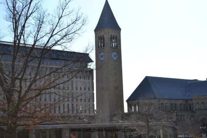 康奈爾大學在紐約市附近的小鎮(zhèn)伊薩卡,那里景色優(yōu)美,氣勢開闊??的螤柕男@位于山頂,在圖書館憑窗遠眺,只見蒼蒼茫茫,一派遼闊氣象。校園面積有3000多英畝,與美國東北部典型的較為擁擠的大學相比,呈現(xiàn)出一派宏大氣度。
