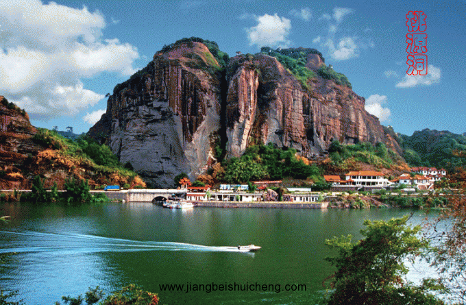 由漁亭沿漳水而上,距黟縣城8公里的石墨嶺南麓,山骨突出,巖石削立,古樹蔥郁,桃花夾岸。山腰鑿有洞,即桃源洞。穿沿而過,支木以行,故又稱棧閣嶺,下臨鐘潭,南北壁立百余米,漳水奪澗西瀉,山形險(xiǎn)峻,風(fēng)光綺麗。過洞豁然開朗,屋舍儼然,的確酷似陶淵明筆下的桃花源。