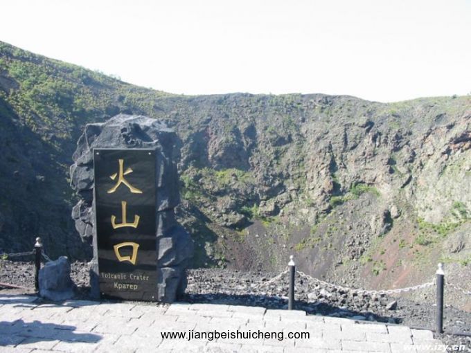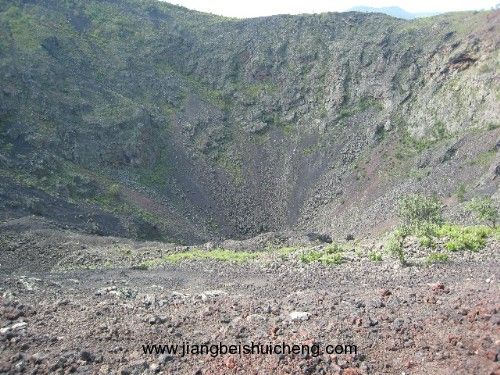 山的東、北兩側(cè)有盤山道可達山頂,山頂有漏斗狀火山口,直徑約350米,深約140米,內(nèi)壁陡峭,景象森然。火山口周圍有人行步道,俯視火山口底令人望而生畏。