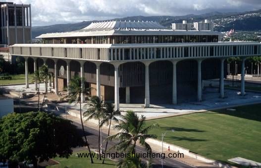夏威夷州議會(huì)大樓,自1969年起這里成為夏威夷州政府所在地夏威夷的經(jīng)濟(jì)主要以旅游業(yè)為主,其美麗的熱帶風(fēng)光每年吸引數(shù)以百萬(wàn)計(jì)的全世界各地游客。