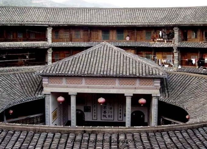 除此以外,該樓有兩個最大的特點:一是由摻人石灰和紅糖的生土夯成的墻身,比現(xiàn)代水泥更堅韌。前幾年樓內(nèi)東側(cè)居民為出入方便,要在后邊開一個小門,用鋼釬挖掘,一小塊一小塊地鑿,不知不覺竟用了二十多天。另一特點是樓外距墻10米處原有一條環(huán)樓壕溝,深3米多,寬5米,與村內(nèi)水渠相通。既可以像護(hù)城河一樣用來御敵,又可以養(yǎng)魚,可謂兩全其美,所以過去稱之為“壕塘”。四五十年前,壕溝還在,往后淤泥越積越多沒有清除,結(jié)果水愈來愈淺便失去廠原有的功能,后來樓主索性用泥石填掉,但痕跡還能依稀辨出。據(jù)村里的老人說,原先樓門前還設(shè)有吊橋呢!馥馨樓的后樓,版權(quán)所有山東聊城聊之旅國際旅行社有限公司,轉(zhuǎn)載必究!是大約200年前重建的。其頂層的中廳,曾作私塾學(xué)堂。右壁有清代同治年間太平天國軍隊留下的墨跡。其中保存比較完整的兩首詩是:“天朝虎將到來臨,伐暴安良義氣深。勸民不做癡迷漢,山林藏匿餓慎身。”和“不燒房屋不殺人,萬眾思何不義心。四民回頭方是岸,要敬天父是好人?!庇稍姷膬?nèi)容可知,當(dāng)年太平天國的軍隊駐扎此樓。據(jù)縣志記載,太平軍曾四次進(jìn)入永定,即清朝咸豐八年(公元1858年)四月、同治三年(公元1864年)十月、十二月和同治四年(公元1865年)三月。其間,將士們盡情抒懷,寫下了很多壁詩,可惜陸陸續(xù)續(xù)被毀,現(xiàn)只剩馥馨樓一處,這不能不說是馥馨樓歷史的不幸。