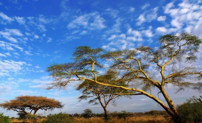 塞倫蓋蒂國(guó)家公園是坦桑尼亞最著名的國(guó)家公園,一個(gè)有著300多萬只大型哺乳動(dòng)物的巨大生態(tài)系統(tǒng)植被以開闊草原型植物為主,但在嚴(yán)重干旱時(shí)幾乎全部變?yōu)樯衬?。主要植物是馬唐和鼠尾粟(鹽堿土壤的代表植物)等茅草。在較濕潤(rùn)地區(qū),水蜈蚣屬植物生長(zhǎng)占優(yōu)。公園中部為大片金合歡林地草原。