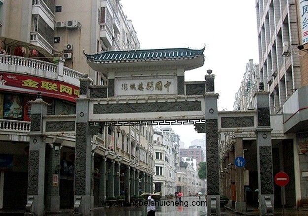 改造后的騎樓城增加了金龍巷、四坊井、維新里、中國騎樓城牌坊。牌坊是一種有著悠久歷史的建筑小品。在古代,牌坊是崇高榮譽的象征,樹牌坊是彰德行、沐皇恩、流芳百世之舉。從建造的目的看,牌坊大致分兩種:一是表彰宦績政聲、孝子義士的牌坊,這種牌坊大多屬北派牌坊,由官府審核后方可建造;二是街巷、里院的入口門房,起到裝飾美化、風俗展示、標識引導等作用。騎樓城的牌坊就屬于后者。版權(quán)所有山東聊城聊之旅國際旅行社有限公司,轉(zhuǎn)載必究!騎樓城的牌坊不只是建筑小品,還蘊含著豐富的文化內(nèi)涵和象征意義,其通過牌坊上雕刻的各種圖案花紋,用隱喻手法表現(xiàn)出來。騎樓城牌坊參考了梧州中山公園入口處的牌坊形式,其四柱落墩都采用龍鳳呈祥和百鳥朝鳳的鏤空圖案,柱內(nèi)置有燈光,使圖案在晚上更顯瑰麗多姿。牌坊上方除正中橫梁是二龍戲珠圖案外,兩側(cè)正反兩面每一幅圖案都不一樣、各有寓意:三只憨態(tài)可愛的小象,寓意萬象更新;美艷盛開的牡丹,寓意花開富貴;隨風輕擺的竹叢,寓意竹報平安;跳躍嬉戲的喜鵲,寓意喜上枝頭等。牌坊正面上方“中國騎樓城”四個大字為時任中共廣西壯族自治區(qū)副書記潘琦所題,潘琦對騎樓城很有感情,多次考察騎樓城,并寫了一篇“漫步騎樓城”游記發(fā)表在2004年9月30日《廣西日報》第11版。9月30日這一天正是騎樓城維修工程竣工、舉行開城儀式的大好日子,潘琦以“漫步騎樓城”一文作為獻給梧州騎樓城開城儀式的一份厚禮。牌坊上方的背面圖案為梧州著名的旅游景點系龍洲。這些精心設計的山花板飾是專門到廣東云浮訂做的青灰石雕,每一件在做工上都要求精巧細致,蘊含著喜慶吉祥的祝愿。
