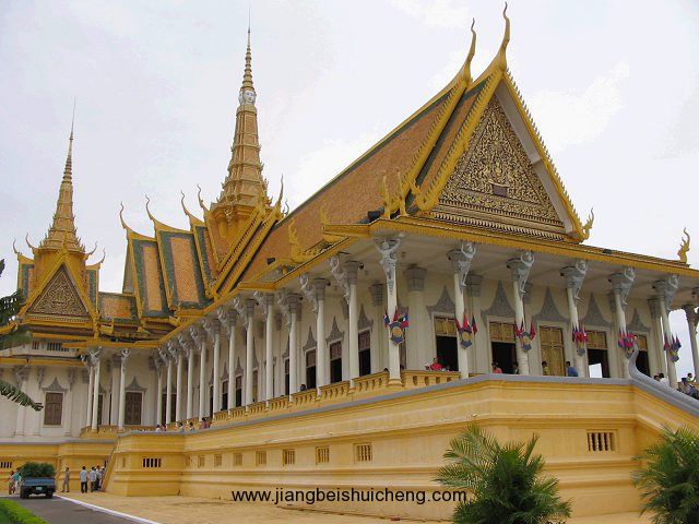 是諾羅敦國王于1866——1870年建造的,坐落在洞里薩河邊,也稱四臂灣大王宮,有寬敞平整干凈的馬路和大塊的草坪廣場,包含國王的住所在內(nèi)共有20余座建筑。王宮為長方形,長435米,寬402米,外有城墻。王宮的建筑具有高棉傳統(tǒng)建筑風(fēng)格和宗教色彩,宮殿均有尖塔,代表繁榮;殿身涂以黃、白兩色,黃色代表佛教,白色代表婆羅門教。王宮最初為木結(jié)構(gòu),后改建為水泥結(jié)構(gòu),但保持了原來的風(fēng)貌。版權(quán)所有山東聊城聊之旅國際旅行社有限公司,轉(zhuǎn)載必究!王宮內(nèi)還有銀殿(Silver Pagoda)和拿破侖三世博物館。銀殿因地面鋪有5000塊銀磚而得名,是由諾勒丹國王于1829年用意大利大理石所興建,寺內(nèi)收藏大量珍貴文物,包括一尊西索瓦國王的金制塑像(重90公斤,上嵌9584粒鉆石,最重的一顆達25克拉),一尊17世紀(jì)的大型翡翠玉佛像,一幅40多厘米高的鑲金壁畫等等。回廊的墻壁上繪有歷代王朝功績和宗教故事的壁畫,也是重要文物,并陳列著外國國家元首送的禮品。參觀王宮有時間限制,而且著裝必須整潔。黃昏王宮廣場上人很多,既有納涼的本地人和僧侶,也有天南海北的游客。