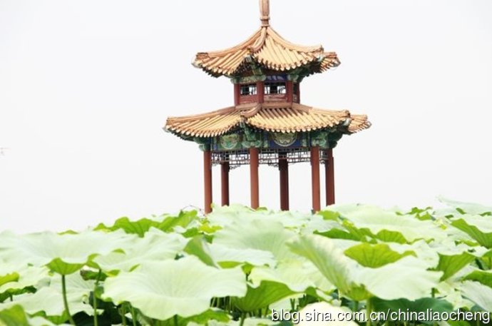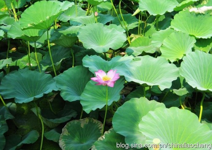 一個(gè)小亭子在滿(mǎn)園的荷葉中,顯得是多么挺拔啊