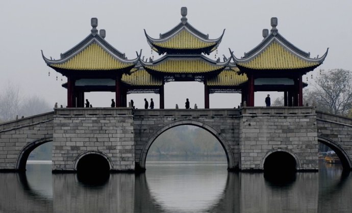 不知不覺中,我們已經(jīng)進入了二十四橋景區(qū)。“二十四橋”出自唐代著名詩人杜牧的詩句“青山隱隱水迢迢,秋盡江南草未凋;二十四橋明月夜,玉人何處教吹蕭”。