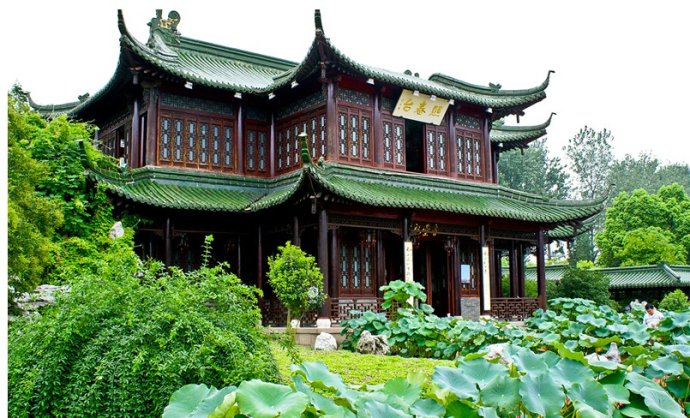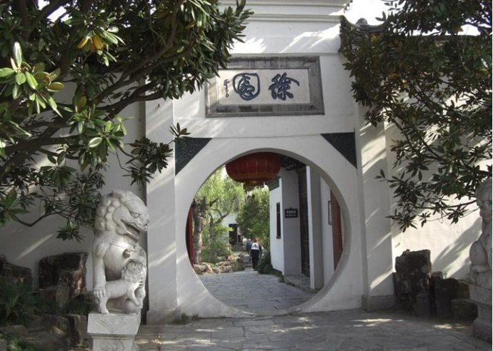 長堤的盡頭便是“徐園”徐園中有一館、一榭、一亭,外有曲水,內(nèi)有池塘,花木竹石,恰到好處,充分體現(xiàn)了江南園林的精巧雅致。
