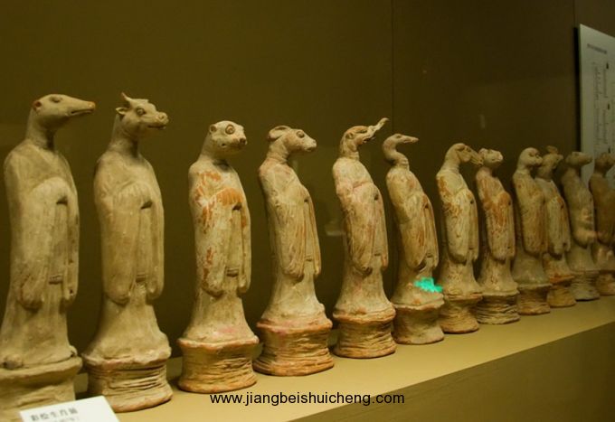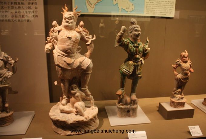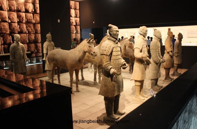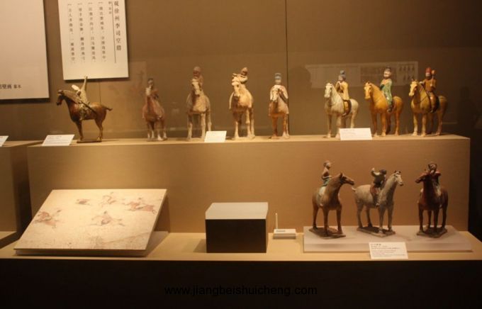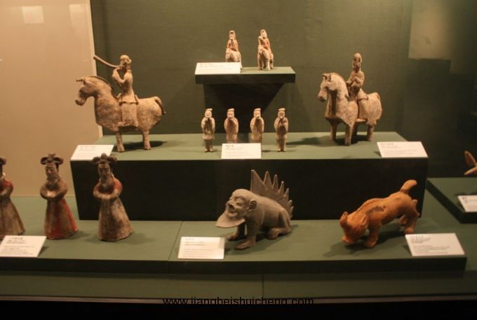 館內(nèi)珍藏著歷代陶俑,時代包括秦、漢、北朝、隋、唐和宋、元、明、清。質(zhì)地有陶、彩繪陶、釉陶和三彩。藝術(shù)形象有文武官員、甲士侍衛(wèi)、男仆女侍、西域胡人,以及天王、鎮(zhèn)墓獸和馬、駱駝等各種動物。