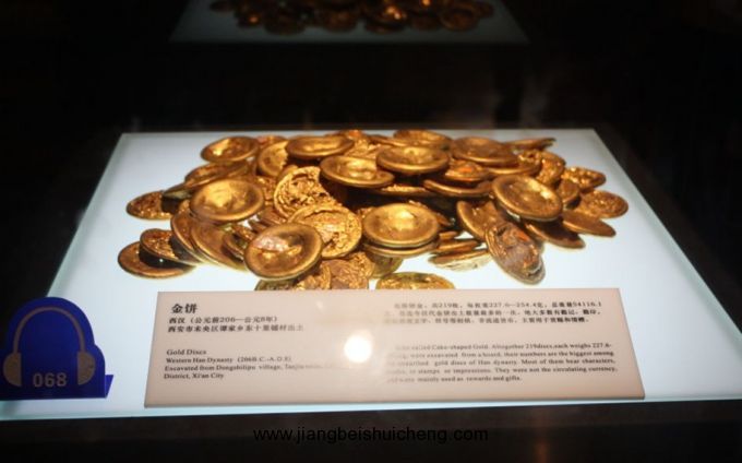 各種金銀玉器,包括湮金望銀的銅器。其中如西周玉制禮器、春秋秦公大墓出土的金啄木鳥、西漢皇后玉璽、金銀竹節(jié)銅熏爐和1970年西安何家村唐代窖藏出土的鑲金獸首瑪瑙杯、八棱樂伎金杯、鎏金舞馬銜杯紋銀壺、赤金走龍等,均屬舉世罕見的精品。