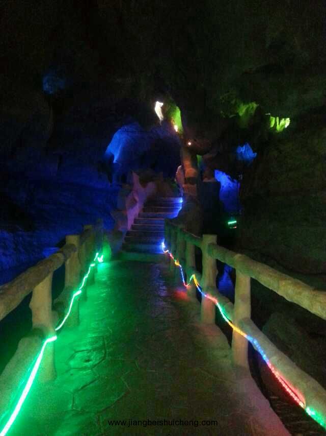 第二天游覽地下大峽谷,地下大峽谷最出名的游玩項目當(dāng)屬地下漂流。地下河漂流項目經(jīng)過改造,漂流長度由原來的723米延長到1000米。該項目已經(jīng)得到上海大世界吉尼斯記錄總部的認(rèn)證,被譽為中國最長的溶洞漂流項目[。漂流道的改造設(shè)計充分體現(xiàn)了溶洞內(nèi)的幽深莫測,起伏高下,波激浪涌,抑揚頓挫的特點和恐龍模型的陣陣吼聲,將地下河漂流的原生野始,驚險刺激演繹的淋漓盡致。
