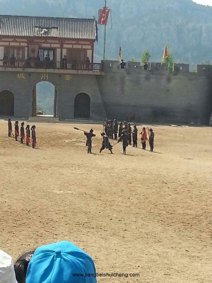 九頂塔影視劇場(chǎng)精心打造了五大實(shí)景劇。有紅色經(jīng)典參與劇《地道戰(zhàn)》、好萊塢場(chǎng)景劇《山洪暴發(fā)》、大型馬戰(zhàn)實(shí)景劇《好漢秦瓊》、《武松醉打蔣門(mén)神》、《劉三姐招親》,是國(guó)內(nèi)實(shí)景劇節(jié)目演出最多的景區(qū)。紅色經(jīng)典參與劇《地道戰(zhàn)》演員陣容龐大,具有較強(qiáng)的思想性、參與性、喜劇性和娛樂(lè)性,再現(xiàn)了當(dāng)年地道戰(zhàn)的戰(zhàn)爭(zhēng)場(chǎng)景,濃縮了地道戰(zhàn)的精彩片段,是一部難得的“牢記歷史、勿忘國(guó)恥”的生動(dòng)愛(ài)國(guó)主義教育題材。好萊塢場(chǎng)景劇《山洪暴發(fā)》,再現(xiàn)了暴風(fēng)驟雨、驚心動(dòng)魄的場(chǎng)面,氣勢(shì)磅礴,令人震撼,弘揚(yáng)了中國(guó)人民不被自然災(zāi)害所嚇倒和團(tuán)結(jié)一致、克服困難、重建家園的大無(wú)畏精神。