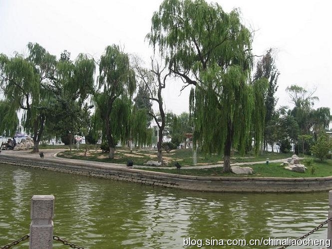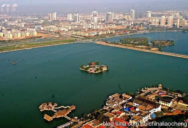 風(fēng)光秀麗的東昌湖環(huán)繞聊城古城一周,始建于宋熙寧三年(公元1070年)。當(dāng)時因修筑城墻以及護城堤挖土而成,后經(jīng)歷代開闊,現(xiàn)在面積已達(dá)6.3平方公里,與杭州西湖相當(dāng),是濟南大明湖的4—5倍。東昌湖由10個湖區(qū)和20塊水面組成,湖岸線長達(dá)16千米,是中國江北地區(qū)罕見的大型城內(nèi)湖泊,她為聊城這座城市增加了靈氣,是聊城的最靚點。她以黃河水為源,積水約1680萬立方米,水深3—5米,常年不竭。東昌湖水清澈,無任何工業(yè)污染;景色宜人,令游客流連忘返,是國家釣魚基地,適宜水上游樂項目的開發(fā)與建設(shè)。