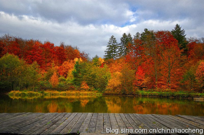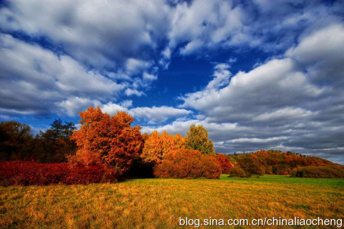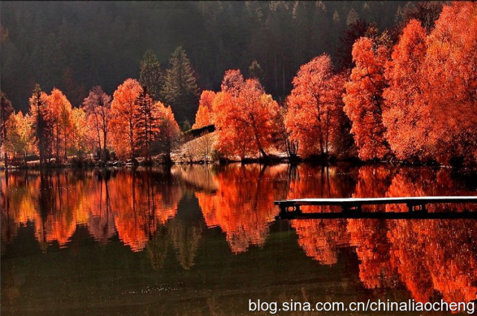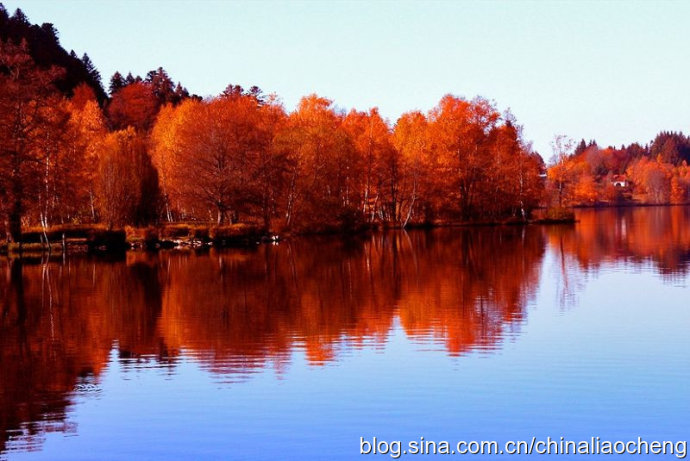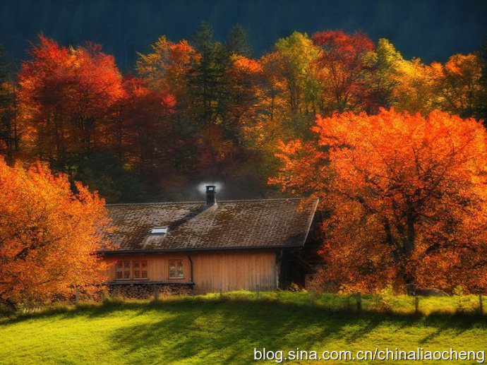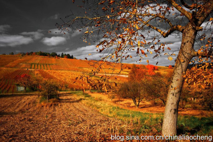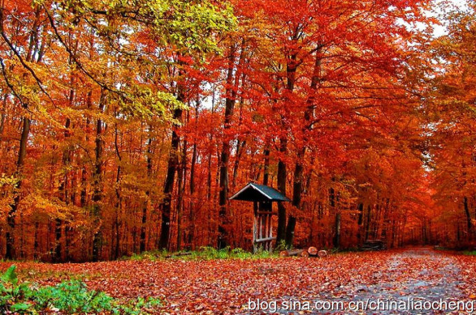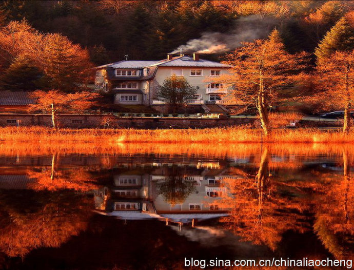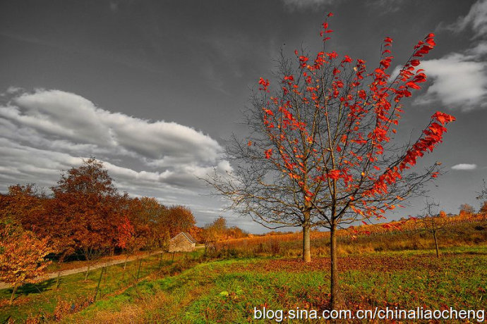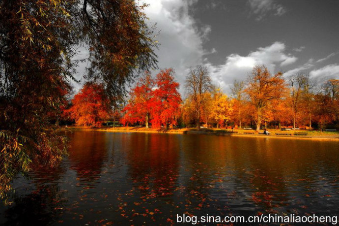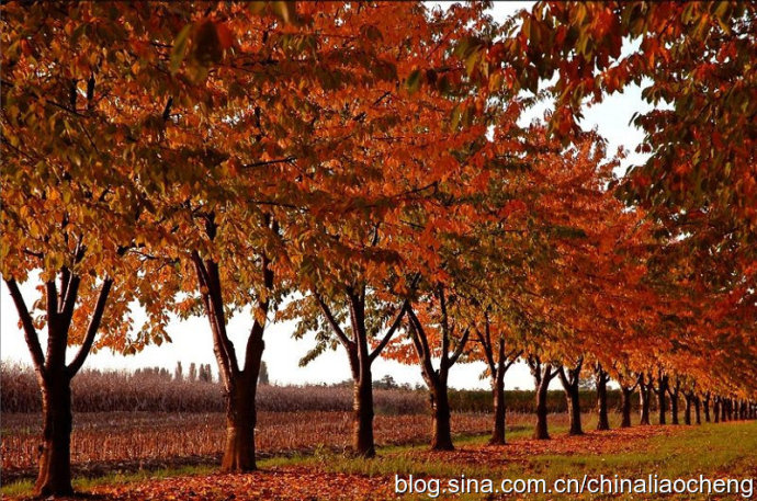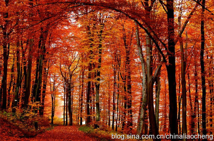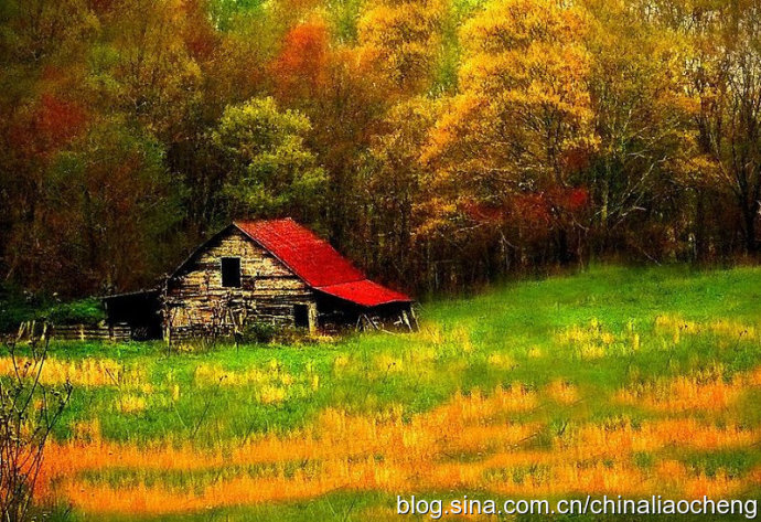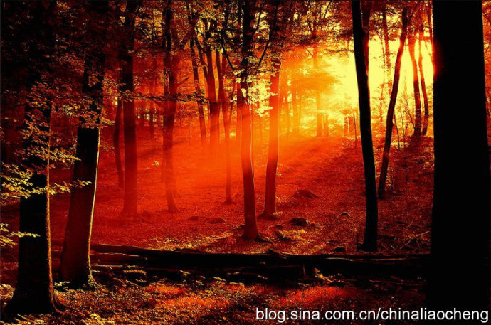 最動人是秋林映著落日。那酡紅如醉,襯托著天邊加深的暮色。晚風(fēng)帶著清澈的涼意,隨著暮色浸染,那是一種十分艷麗的凄楚之美,讓你想流幾行感懷身世之淚,卻又被那逐漸淡去的醉紅所懾住,而情愿把奔放的情感凝結(jié)。