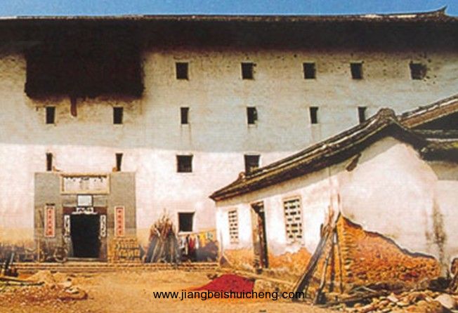 遺經(jīng)樓位于福建省龍巖市高陂鎮(zhèn)上洋村,建于清咸豐元年(1851年),方形土樓。外墻東西寬136米,南北長76米,占地10336平方米。其后座主樓高17米5層,是永定現(xiàn)有土樓中最高的樓房。主樓左右兩端分別垂直連著一座四層的樓房,并與主樓平行的四層前樓緊緊相接,圍成一個巨大的方樓,如此環(huán)繞形成一個大“口”字。里面又有一組小“口”字形建筑,形成一個獨特的“回”字形整體造型。真是“門中有門,樓中有樓,重重疊疊”,當?shù)厝硕挤Q它為“大樓廈”。 中間為祖堂。前樓一左一右建有兩所學堂,樓內子女可以在樓內就讀,學堂中間是個石坪,前建有大門樓,大門高6米寬4米。在主樓后面有花園一座、魚塘一口以及碓房、牛舍等附設建筑。遺經(jīng)樓共有280個房間。