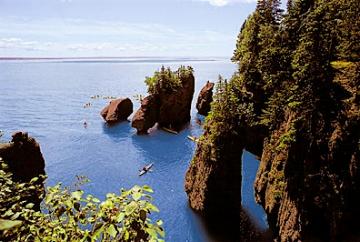 新不倫瑞克省的南部森林逐漸稀疏,向沿海地貌過渡,該省最主要河流圣約翰河在芬迪灣注入大西洋。芬迪灣(Fundy Coast)以不同尋常的潮汐聞名于世,它位于新不倫瑞克省與新斯科舍省之間,與大陸海岸線成平行方向,縱深290公里。芬迪灣的海潮是世界上最高的,平均高度為 10 米,最高可達(dá) 17 米,強(qiáng)勁的浪濤,不僅每十二小時帶來1000億噸海水(這比全球所有淡水河流中每天流動的水量還要多),更以數(shù)世紀(jì)的旱雕砌成舉世聞名的“花盆巖”景觀。