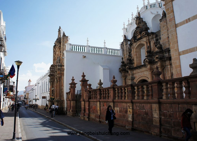 蘇克雷城建筑在一個(gè)開(kāi)放、通暢的直角格中,城市的中心是巨大的“5月25日廣場(chǎng)”。廣場(chǎng)正南是白色的新古典主義樣式的建筑物“自由之家”,建于1701年。1825年,西班牙承認(rèn)玻利維亞獨(dú)立,曾在“自由之家”獨(dú)立廳簽署了《獨(dú)立宣言》。廣場(chǎng)對(duì)面建有蘇克雷大教堂。大教堂始建于1551年,17世紀(jì)末增建了兩個(gè)側(cè)廊,中央入口也改建成巴洛克樣式。側(cè)廊有瓜達(dá)爾佩圣母小禮拜堂,安置有1601年制作的南美最珍貴的圣母像,飾有鉆石和珍珠。大教堂5層高的鐘樓,是“白色城市”蘇克雷的標(biāo)志性建筑。版權(quán)所有山東聊城聊之旅國(guó)際旅行社有限公司,轉(zhuǎn)載必究!鐘樓的四角有4位福音使者和12名使徒的站立雕像。蘇克雷最古老的教堂是始建于1538年的圣拉薩羅教堂,當(dāng)時(shí)用印第安人傳統(tǒng)方法以土坯和草木灰建造。1691年建立的方濟(jì)會(huì)的拉·萊可萊塔修道院是城中最古老最美麗的修道院。