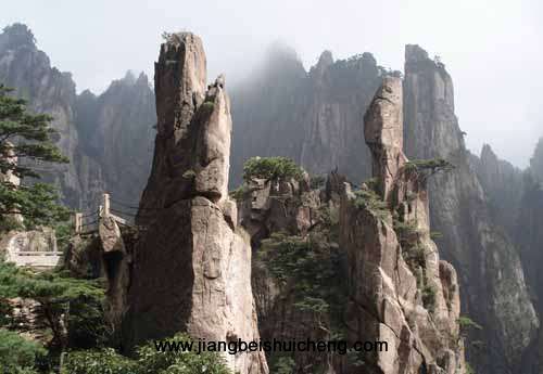 仙人踩高蹺在排云亭前,遠瞰正前方,可見有一石,下端極細,似一根根子插在地上,上端若一人直立,身子向前微傾,其狀酷似民間游樂節(jié)目“踩高蹺”。每當云霧繚繞時,則象仙人踩著高蹺,在西海峰壑中攬勝,故名“仙人踩高蹺”。