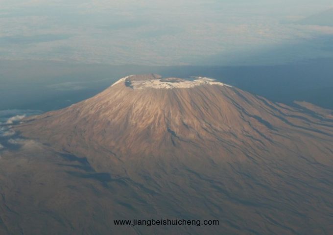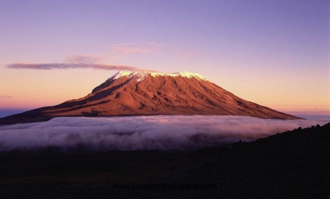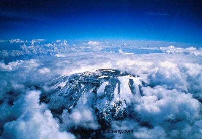 被譽為“赤道雪峰”乞力馬扎羅山位于赤道附近的坦桑尼亞東北部。在赤道附近“冒”出這一晶瑩的冰雪世界,世人稱奇??釤岬娜兆永铮瑥暮苓h處望去,藍色的山基賞心悅目,而白雪皚皚的山頂似乎在空中盤旋。常伸展到雪線以下飄渺的云霧,增加了這種幻覺。山麓的氣溫有時高達59℃,而峰頂?shù)臍鉁赜殖T诹阆?4℃,故有“赤道雪峰”之稱。在過去的幾個世紀里,乞力馬扎羅山一直是一座神秘而迷人的山——沒有人真的相信在赤道附近居然有這樣一座覆蓋著白雪的山。