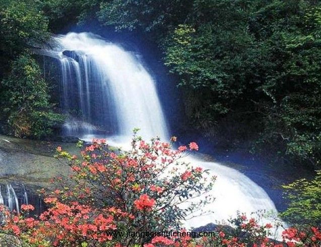 寶鼎瀑布有世界上罕見的特色:花崗巖巖石構(gòu)成的瀑床,700多米的落差,瀑布腳下有高湖相接。瀑布掛在高聳云宵的寶鼎嶺腰,長1千余米,由于山勢陡峭,瀑布共分九級,由完整的丹霞巖石組成,使瀑流猶如在一塊飄浮的紅綢上流過,陽光射過濺起的水霧,七彩如虹,有九重天之說。瀑布最寬處達(dá)200余米,版權(quán)所有山東聊城聊之旅國際旅行社有限公司,轉(zhuǎn)載必究!最窄處也有20余米,總落差180米。每逢春夏之交,瀑布水流量最大。從瀑頂?shù)狡俚祝瑤捉?jīng)周折,形成九級直落寶鼎湖。飛天瀑布從羅漢大肚式的斷崖處洶涌而下,形成巨大的扇形瀑面,氣勢磅礴,吼聲震耳欲聾。